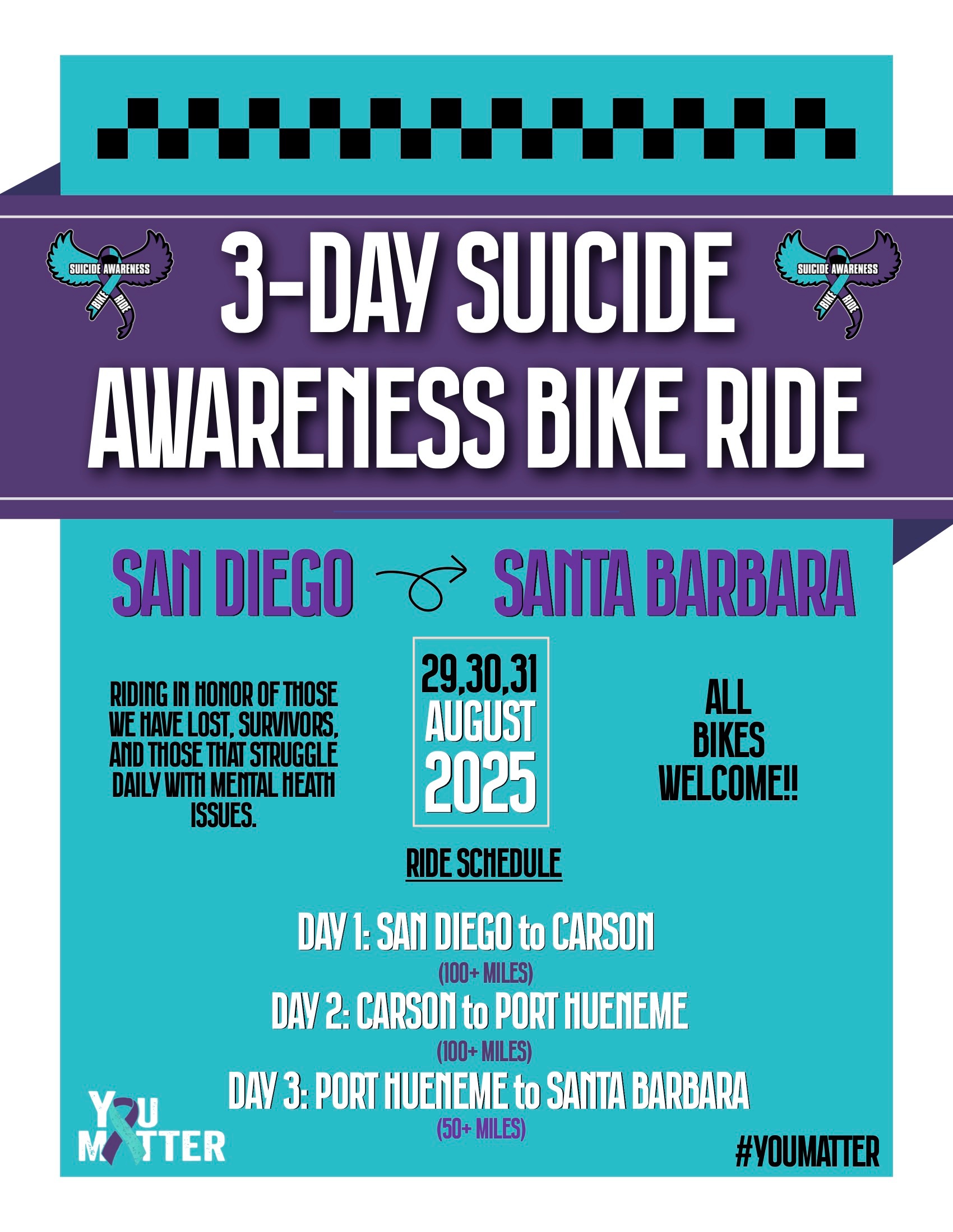 What started as a one-time ride in memory of loved ones lost to suicide, has become a powerful annual movement. Now in its 5th year, the 3-Day SuicideAwareness Bike Ride, founded by Victor Banales & Mike Malicdem, has created a growing platform for survivors, supporters, and advocates to take action, build community, and speak up about mental health.